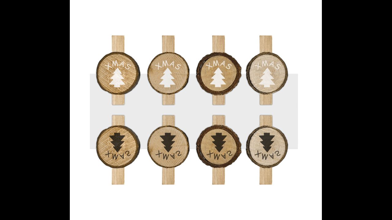 Sada ôsmich drevených štipcov s motívom stromčeka a nápisom XMAS je drobný detail, ktorý dokáže úplne zmeniť charakter vianočných dekorácií. Prírodné drevo v kombinácii s rustikálnou úpravou vytvára ozdobu plnú tepla a útulnosti, dokonale zapadajúcu do atmosféry Vianoc. Štipce majú 5 cm dĺžku a sú vyrobené s dôrazom na každý detail, takže sa dajú opakovane používať počas viacerých sezón.