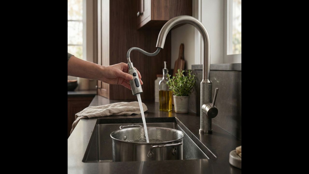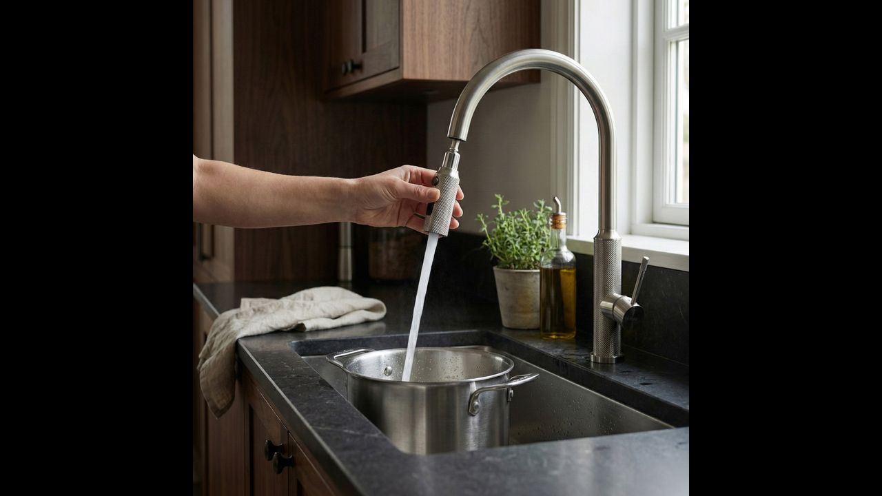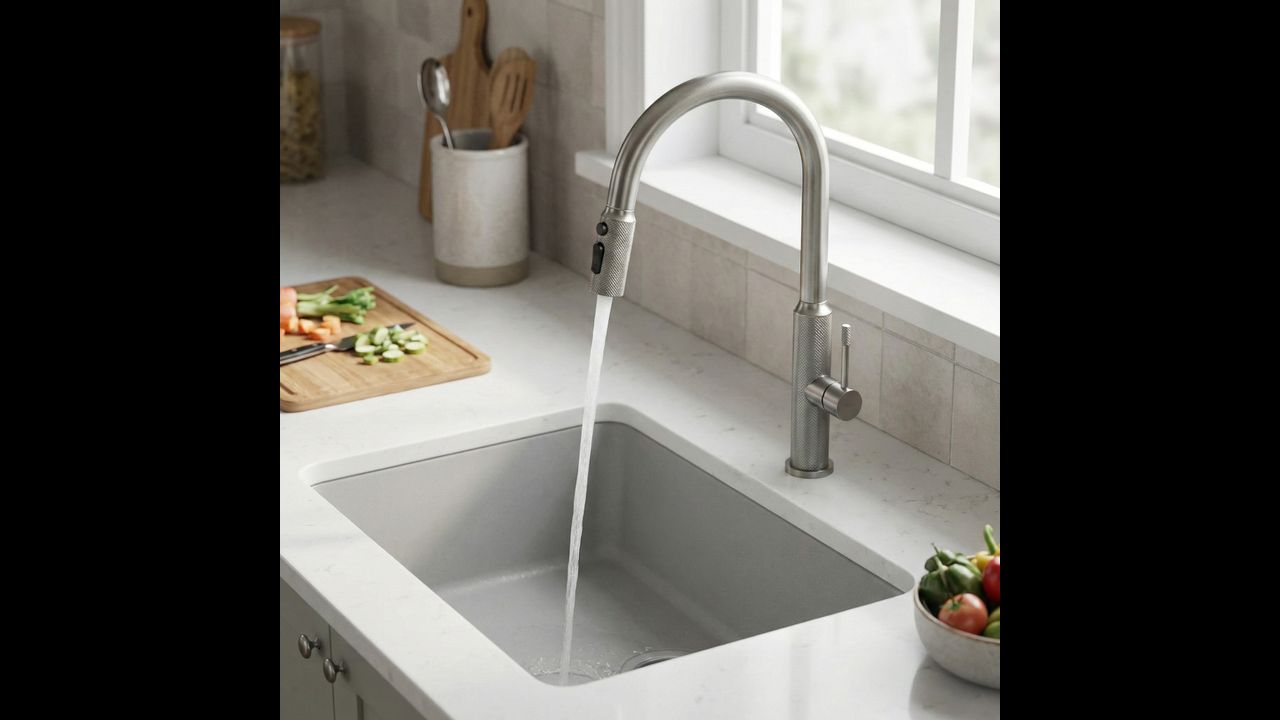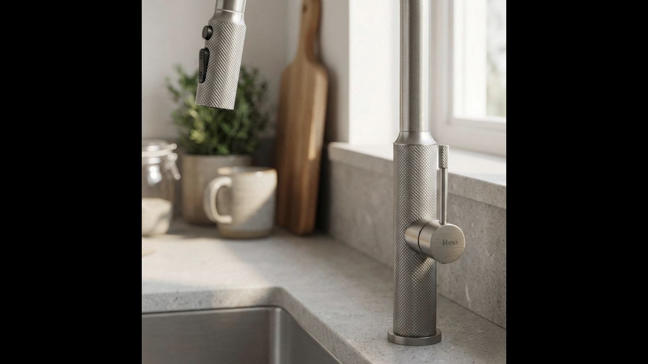 Doprajte svojej kuchyni funkčnosť a moderný štýl vďaka kuchynskej batérii Rea Master. Tento model spája industriálny dizajn s pokročilou technológiou. Je vyrobený z pevnej mosadze a upravený v odtieni brúseného niklu, čo z neho robí odolné a estetické riešenie pre náročných používateľov.