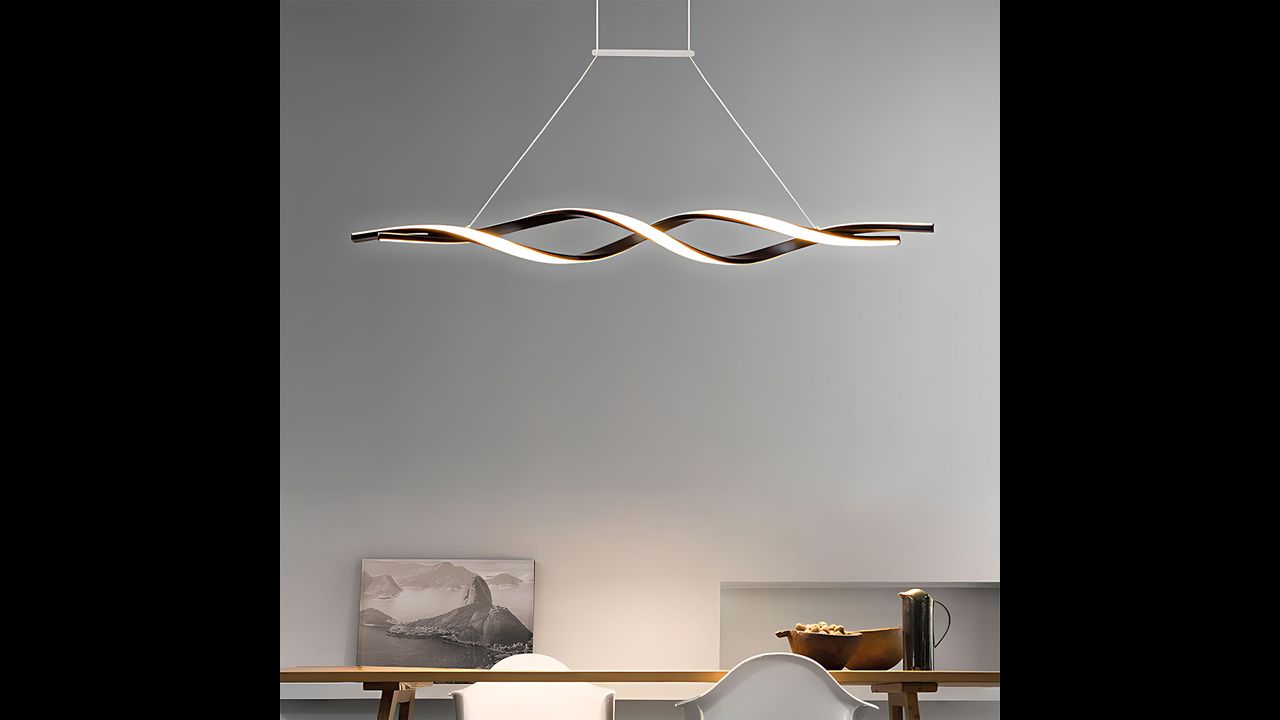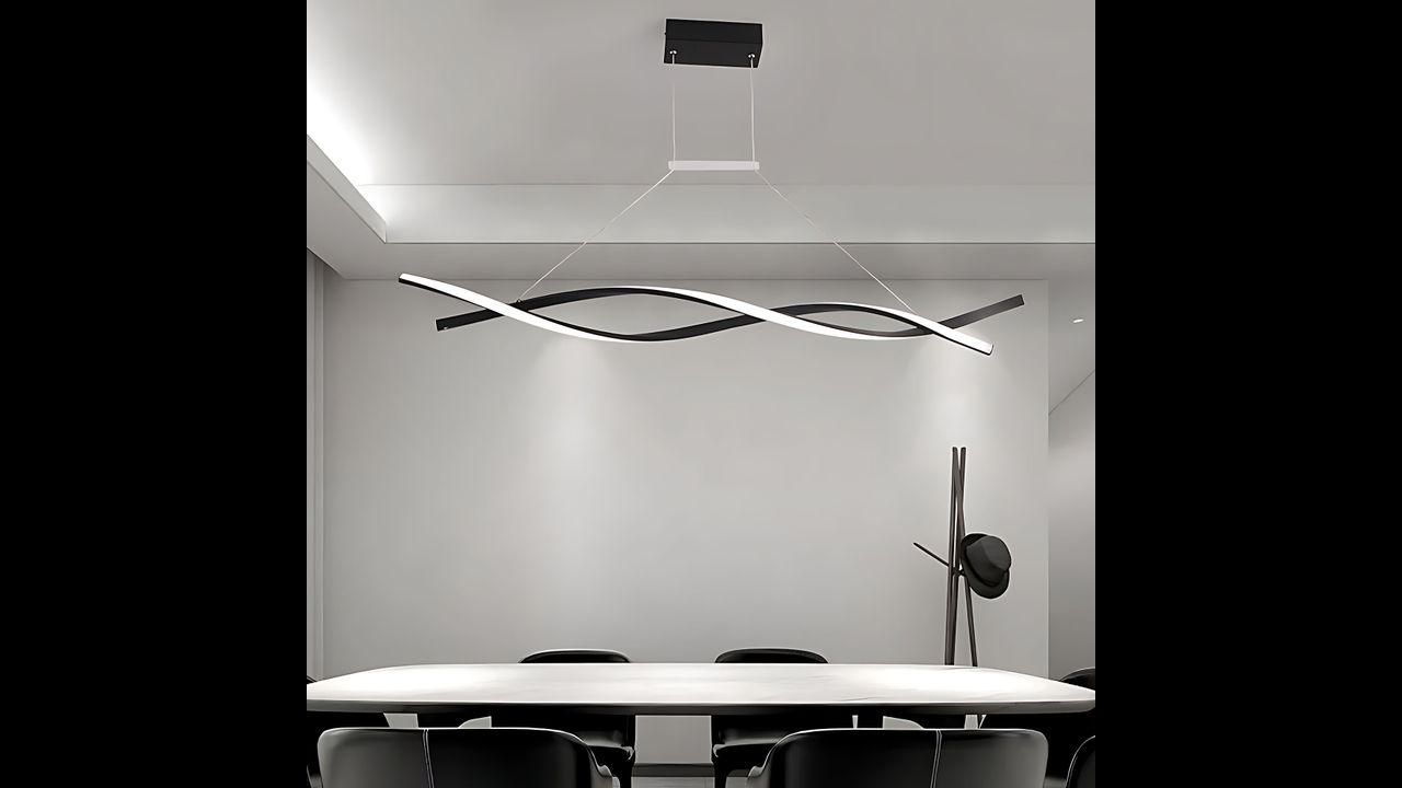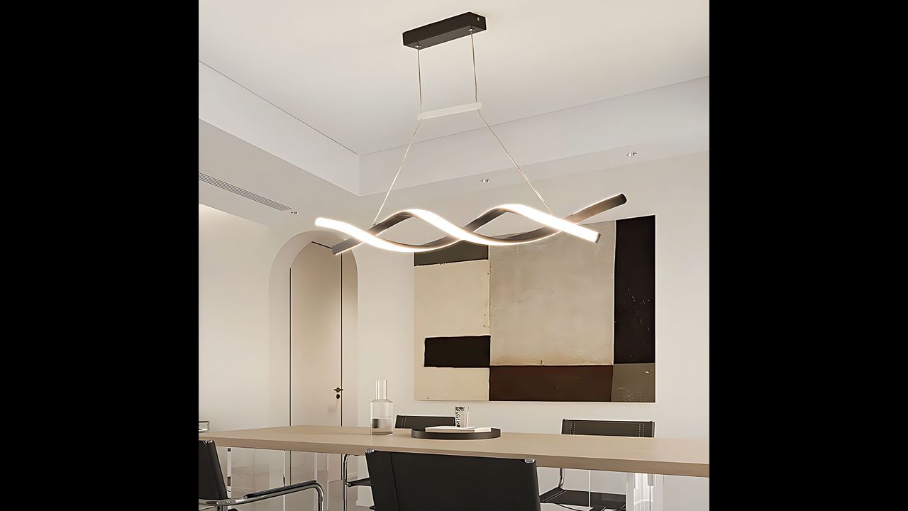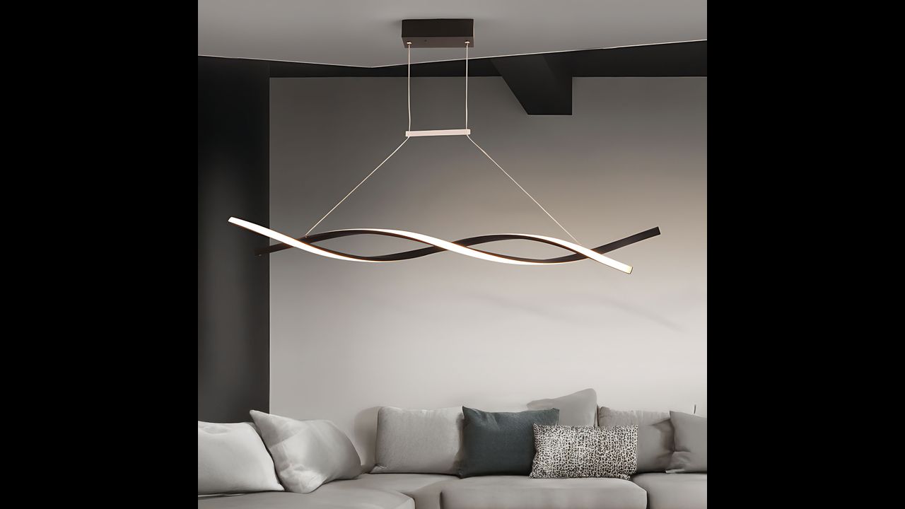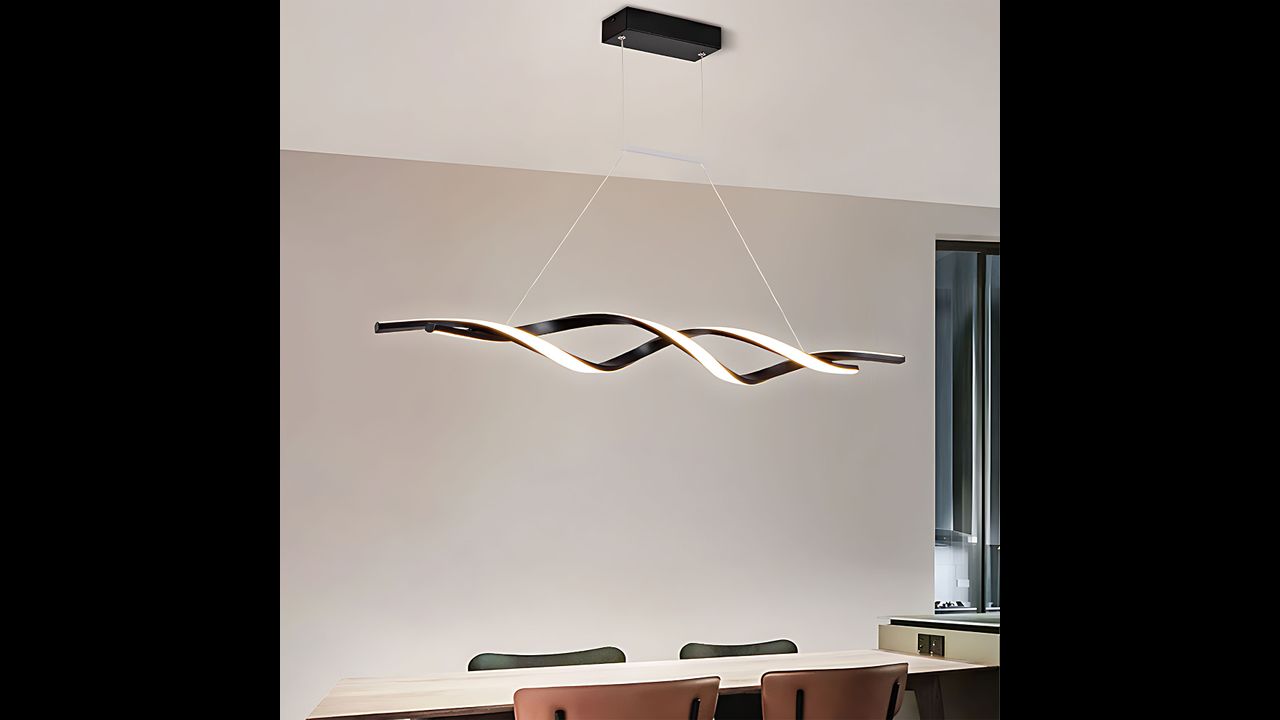 Moderné LED svietidlo je ideálnym riešením pre priestranné a štýlové interiéry. Jeho dynamický, vlnitý tvar vytvára jedinečný vizuálny efekt a kombinácia čierneho rámu s priehľadnými prvkami dodáva svietidlu ľahkosť a eleganciu.