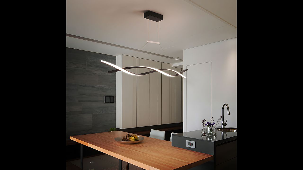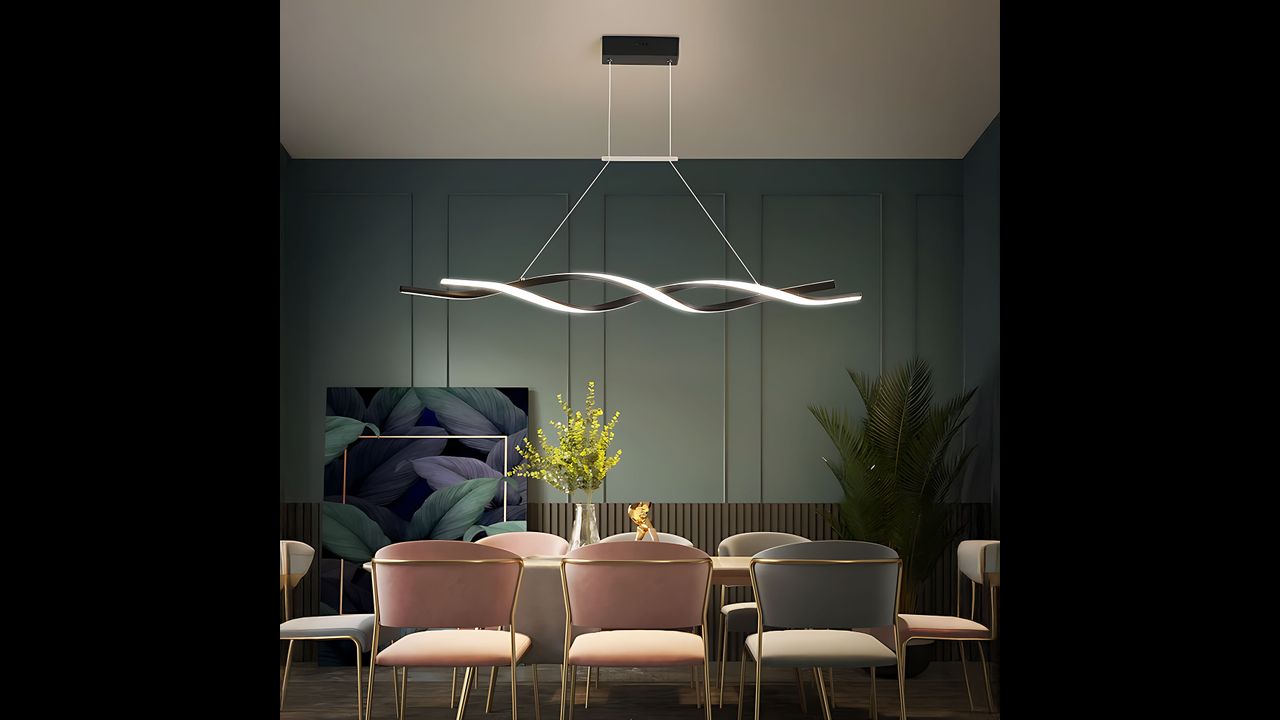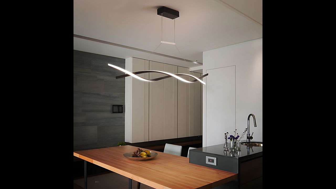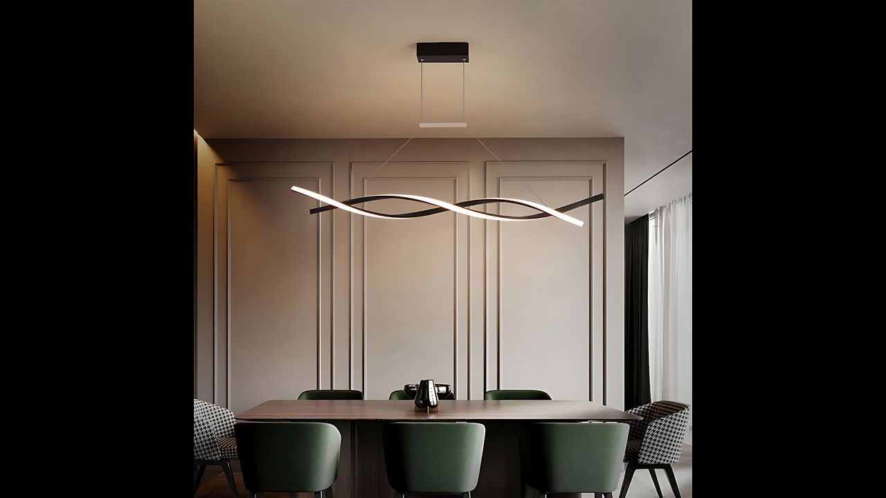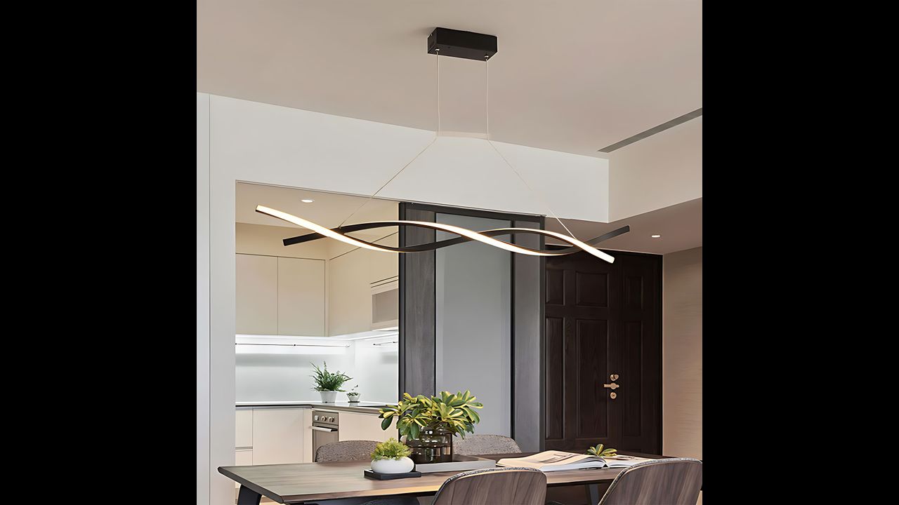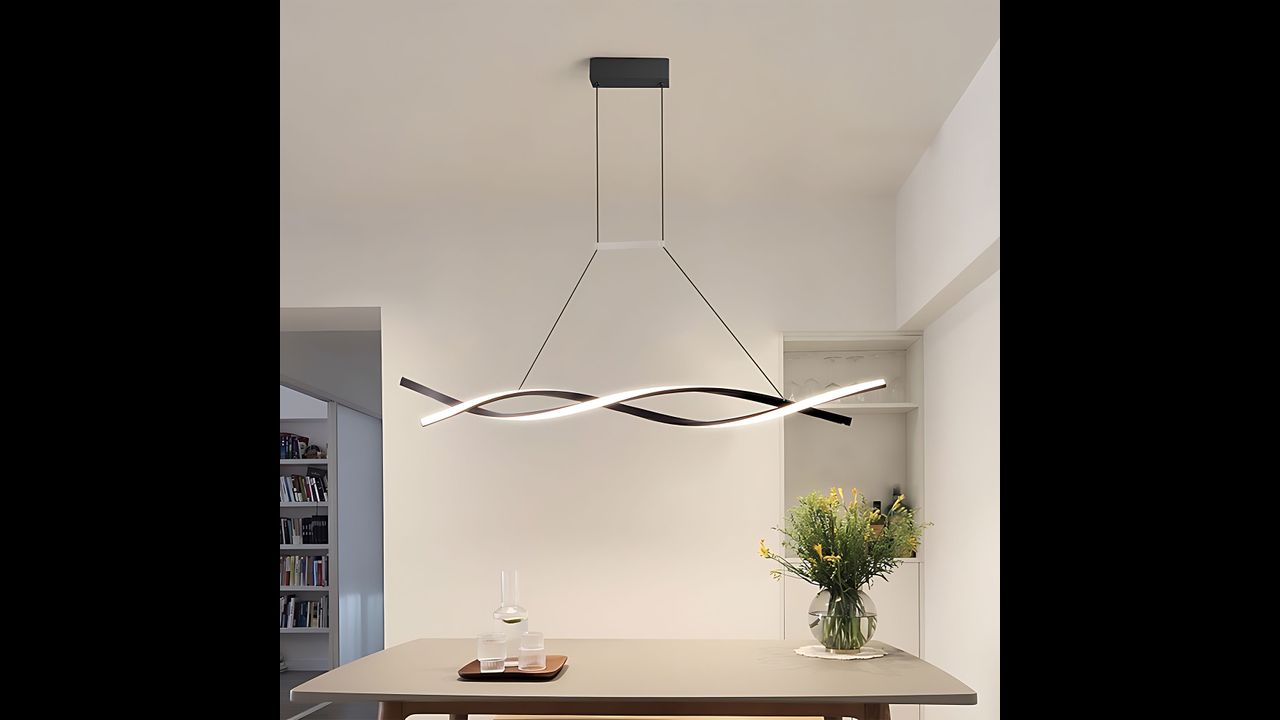 Moderné LED svietidlo je ideálnym riešením pre priestranné a štýlové interiéry. Jeho dynamický, vlnitý tvar vytvára jedinečný vizuálny efekt a kombinácia čierneho rámu s priehľadnými prvkami dodáva svietidlu ľahkosť a eleganciu.