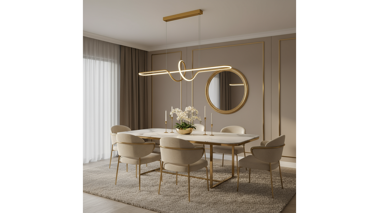 Integrovaný LED pás je zasadený v mliečnom silikónovom difúzore, čo zaručuje rovnomerné a rozptýlené svetlo – ideálne nad jedálenským stolom, kuchynským ostrovom alebo ako hlavné dekoratívne osvetlenie v obývačke.