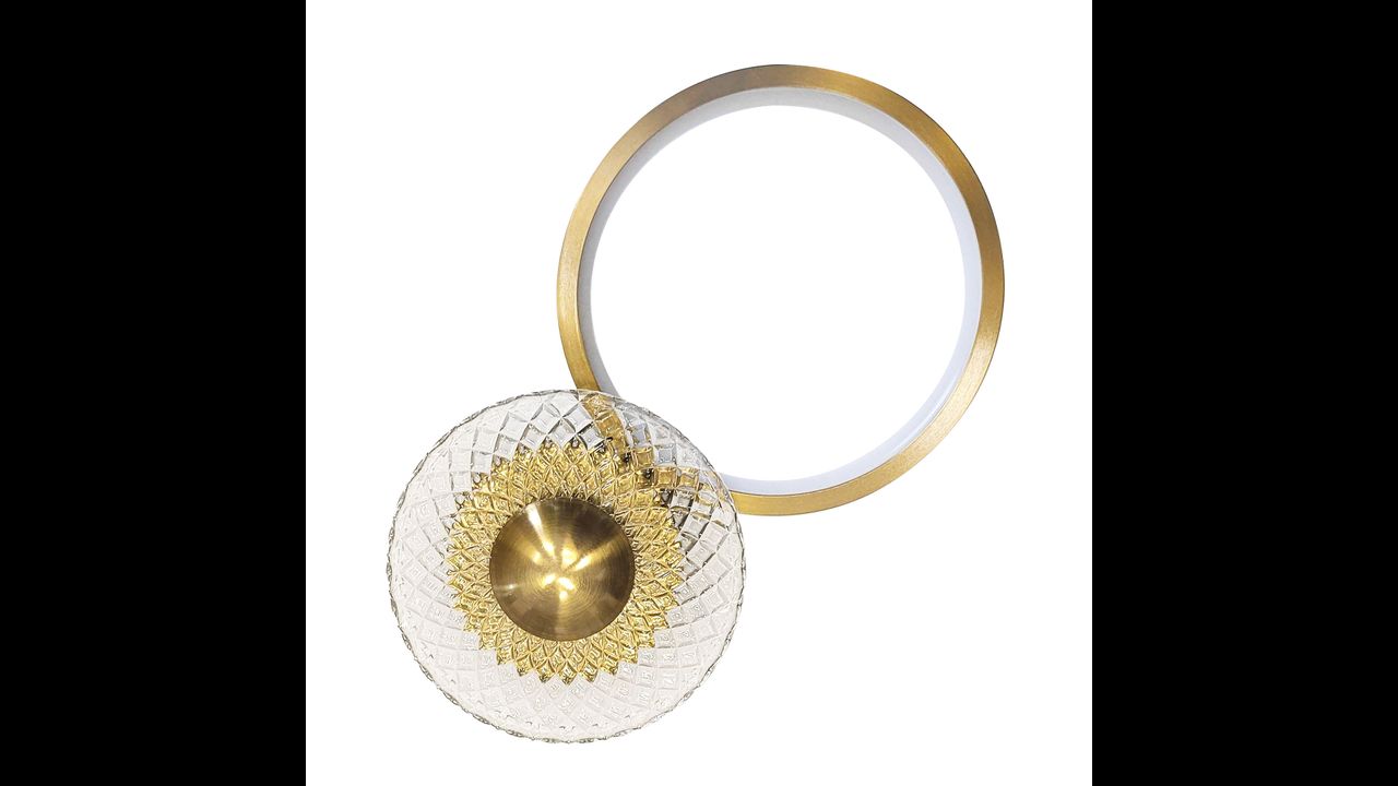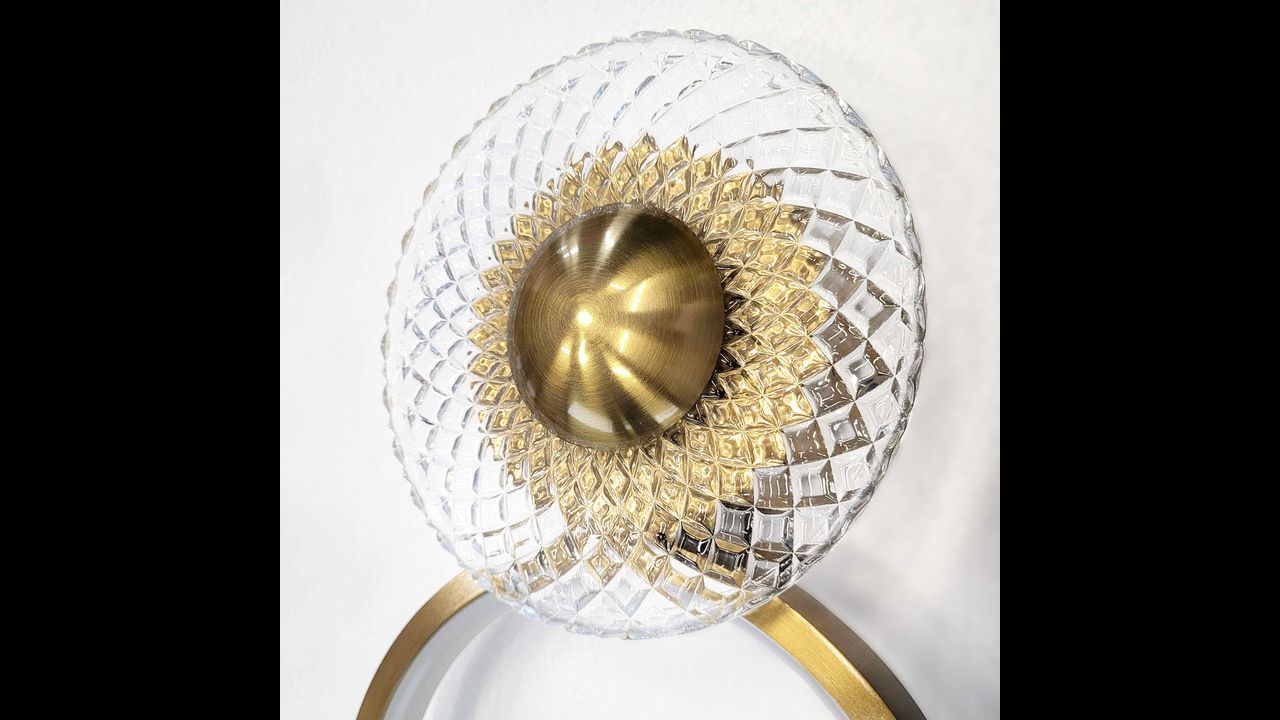 Zdroj LED svetla je ukrytý vo vnútri zlatého prstenca a v centrálnej časti skleneného prvku, vďaka čomu svietidlo vyžaruje mäkké, príjemné svetlo, ktoré sa jemne rozptyľuje a vytvára útulnú atmosféru. Ideálne riešenie pre spálňu, obývačku či elegantnú chodbu – všade tam, kde záleží nielen na svetle, ale aj na dizajne.