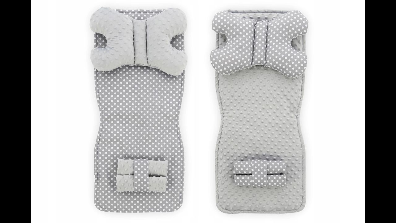 Zloženie súpravy: Dwustronna mata do wózka, Poduszka motylek, Ochraniacze na pasy, Pas do poduszki