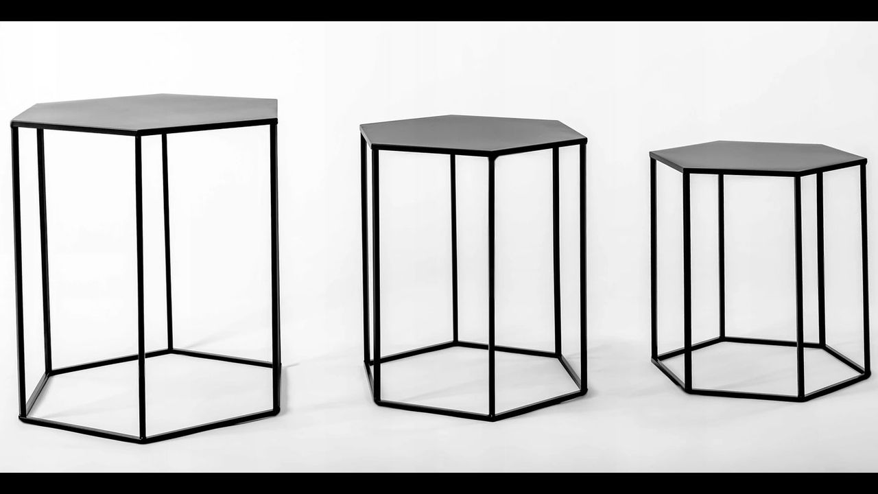 Komplet składa się z 3 sztuk – małego, średniego i większego stolika.
