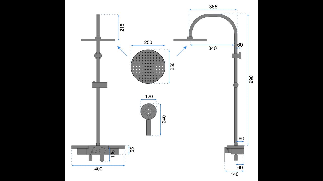 Moderná, štýlová sprchová sada neobyčajných tvarov obsahuje termostatickú batériu, vyrobenú z mosadze vysokej kvality, v čiernom matnom prevedení. Lakovanie batérie bolo vykonané v troch vrstvách, vďaka čomu je batéria odolná voči korózii a strate farby. Ďalšie čiastkové prvky sú vyrobené z prvotriednych materiálov odolných voči poškodeniu aj v čiernom matnom prevedení.