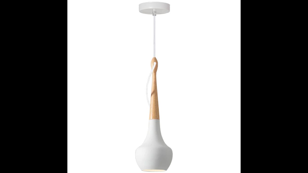 Závesné svietidlo vyrobené z kovu s rámčekom na strope a dreva. Lampa má najobľúbenejší závit pre žiarovky E27. Dĺžku kábla možno prispôsobiť miestnosti alebo usporiadaniu.