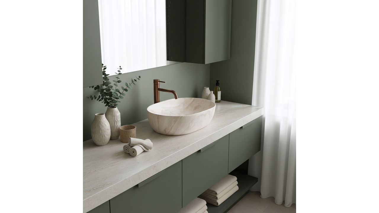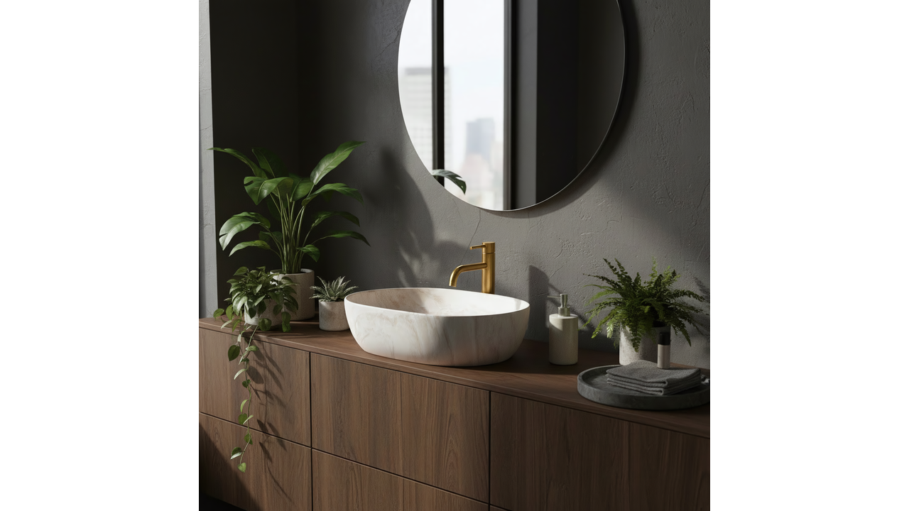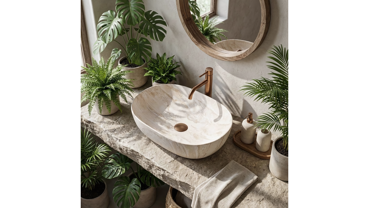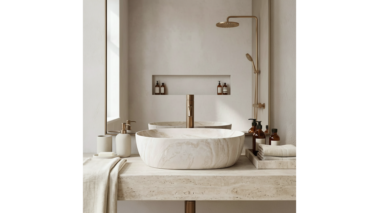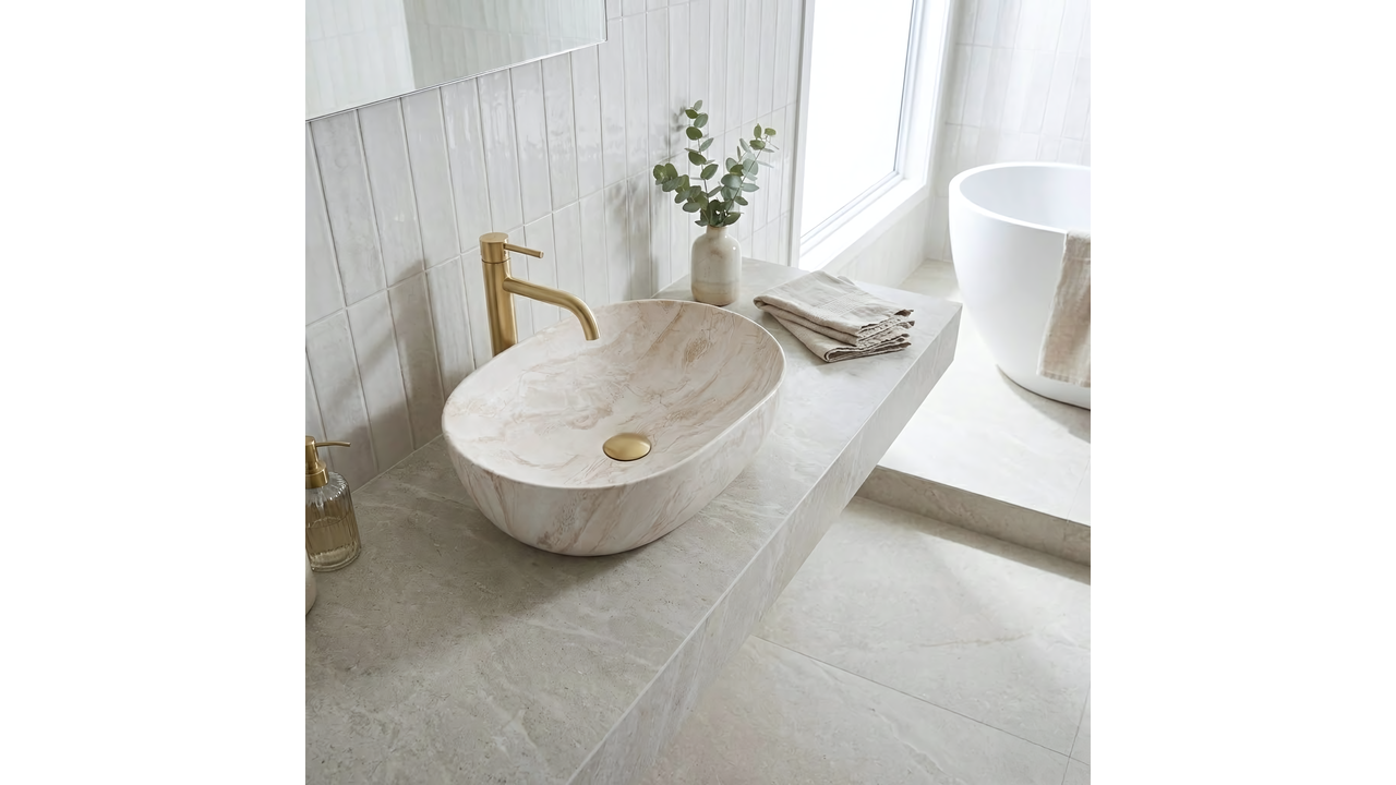 Umývadlo Rea Amelia 48 Kallisto je skvelou voľbou do kúpeľní v štýle spa, organic a modern classic. Jeho svetlý, matný povrch sa ideálne kombinuje s drevom a armatúrou v zlatej farbe, čím vytvára útulnú a zladenú aranžáciu.