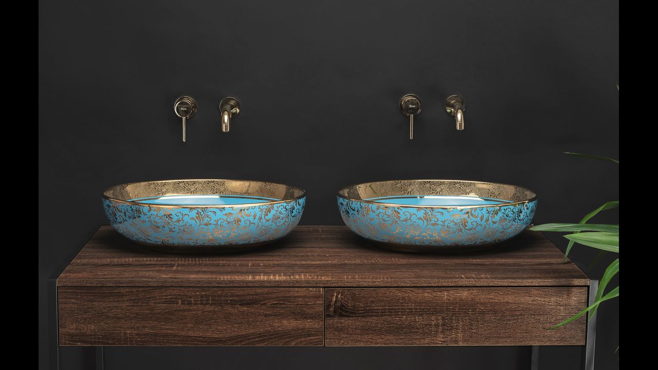 Umývadlo je vyrobené v azúrovom lesklom prevedení so zlatými kytičkovaným efektom a vďaka špeciálnej fáze výroby sa ľahko čistí a je veľmi odolné. Zvolená technika na povrchovú úpravu tohto umývadla robí každé umývadlo originálne.