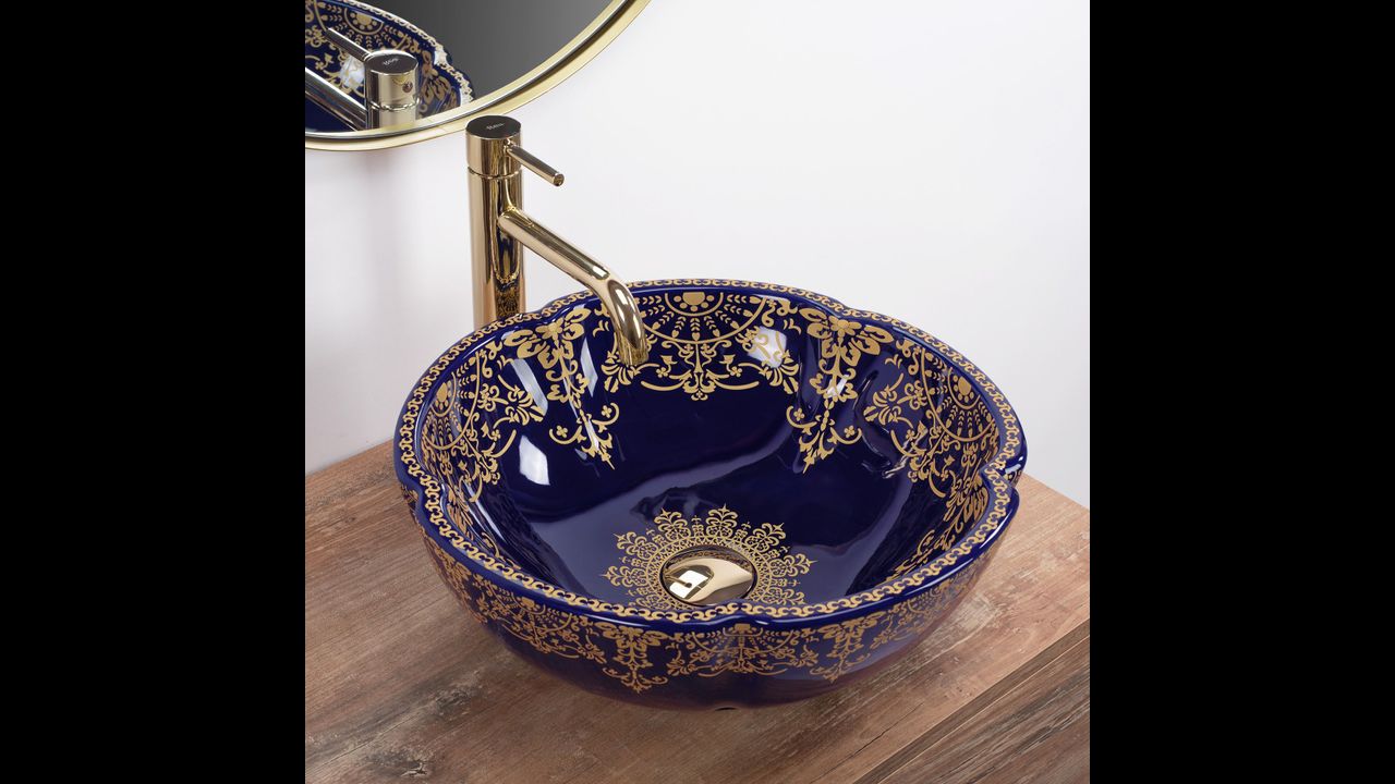 Umývadlo v bielom lesklom prevedení s modrým kvetovým vzorom sa navyše vďaka špeciálnej fáze výroby ľahko čistí a je veľmi odolné.