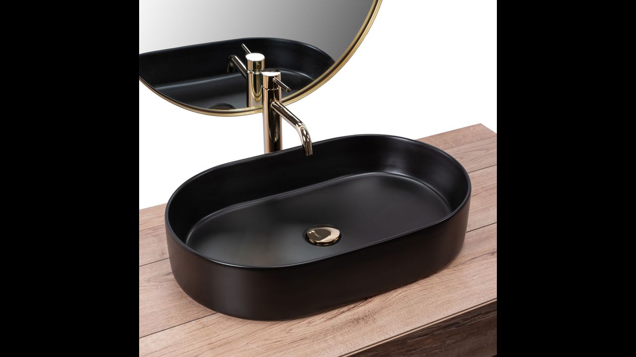 Umývadlo v bielom lesklom prevedení so vznešeným zlatým okrajom sa navyše vďaka špeciálnej fáze výroby ľahko čistí a je veľmi odolné.
