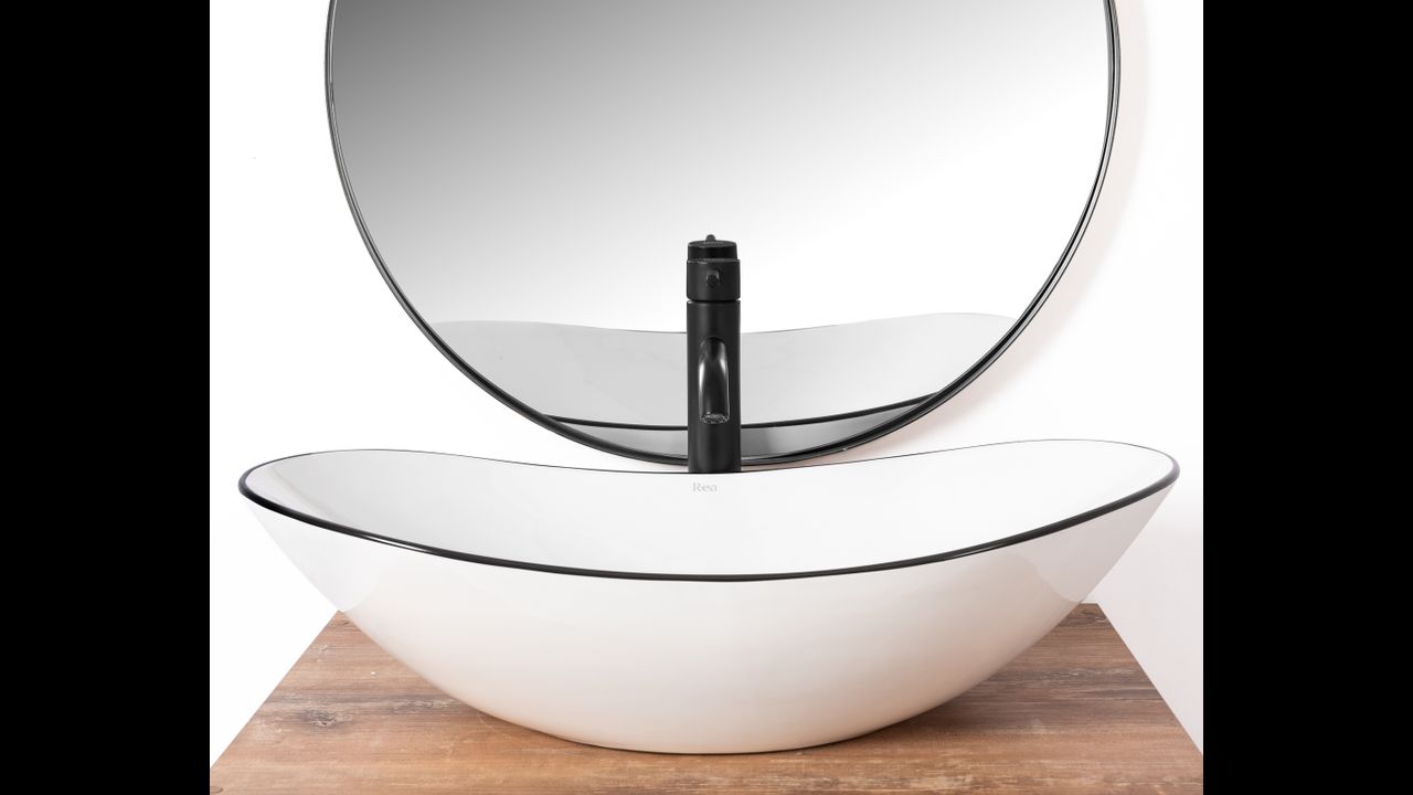 Umývadlo v bielom lesklom prevedení s čiernym okrajom sa navyše vďaka špeciálnej fáze výroby ľahko čistí a je veľmi odolné.