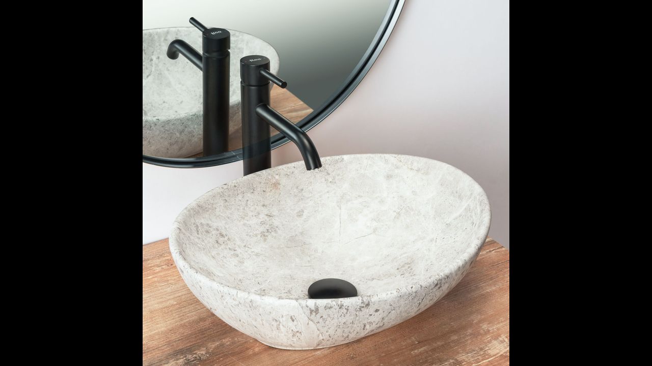 Umývadlo v prevedení, ktoré napodobňuje svetlý kameň, sa navyše vďaka špeciálnej fáze výroby ľahko čistí, je veľmi odolné a má jedinečný vzor.