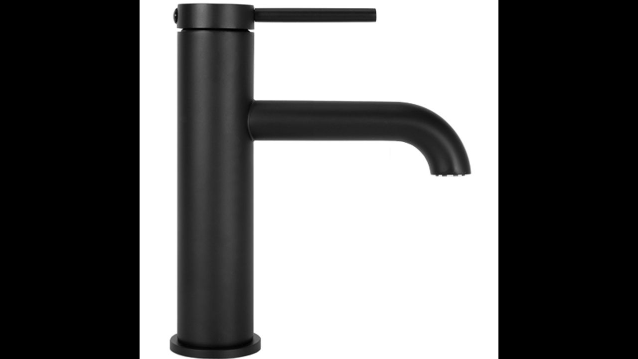 Moderná nízka umývadlová batéria série Rea Spot je vyrobená z vysoko kvalitnej mosadze s úpravou v elegantnom čiernom matnom prevedení.
