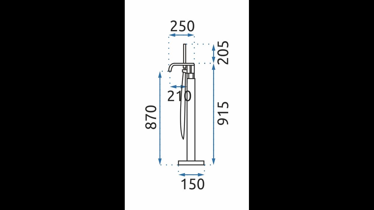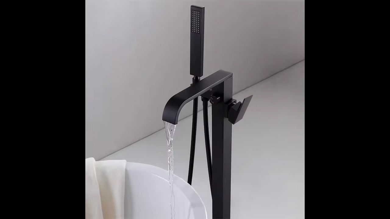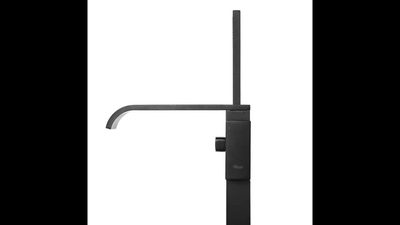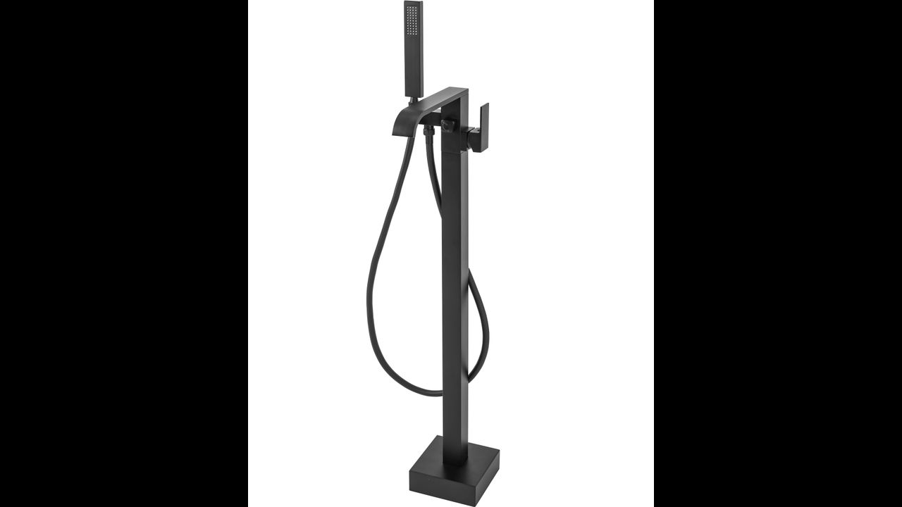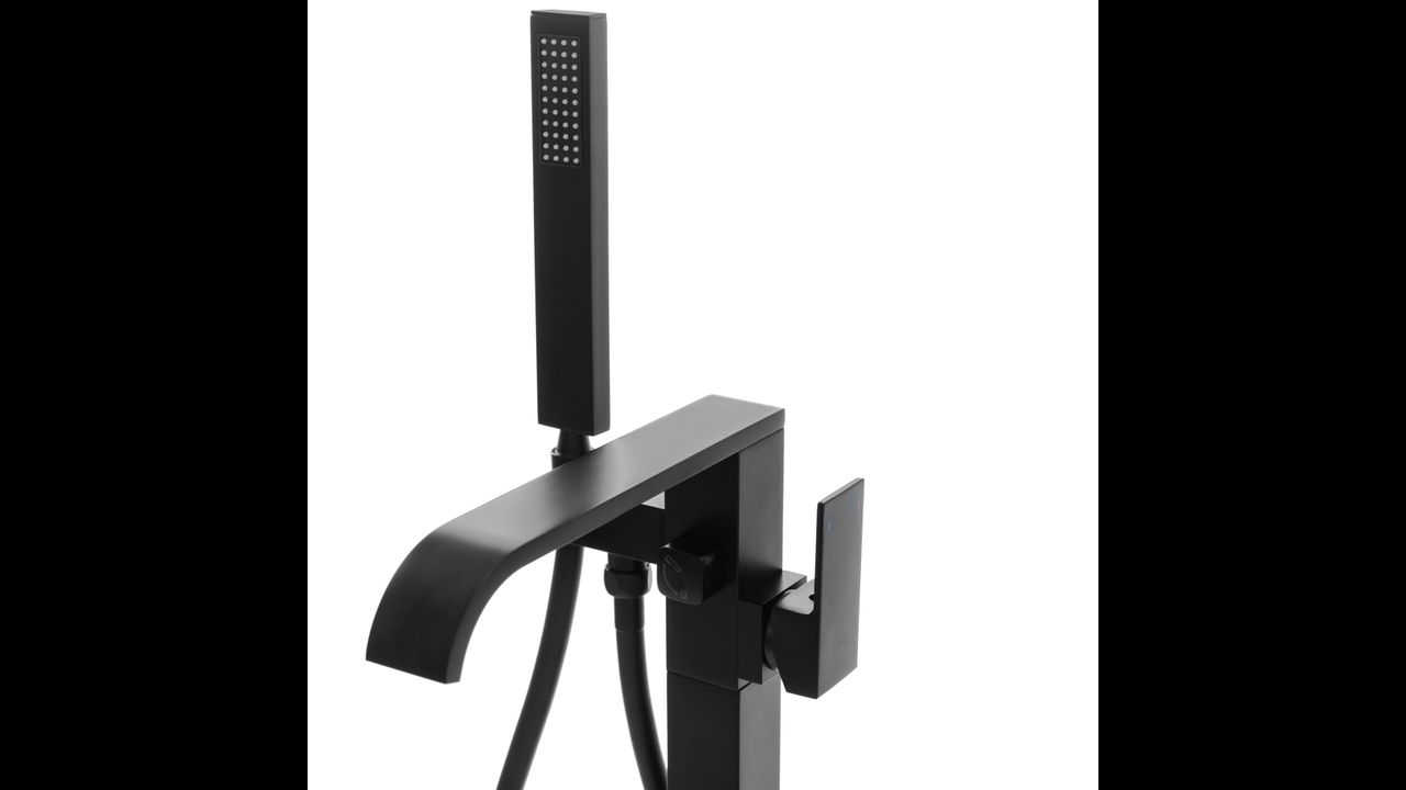 Moderná a veľmi dizajnová voľne stojaca vaňová batéria zaujme svojim neobvyklým dizajnom. Skvele doplní priestor kúpeľne. Výrobok je vyrobený z vysoko kvalitnej mosadze v modnom a nadčasovom matne čiernom prevedení. Batéria je veľmi odolná a ľahko sa čistí.