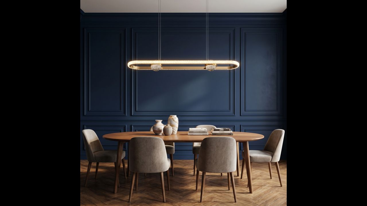Ide o štýlové LED závesné svietidlo, ktoré spája moderný dizajn, efektnú formu a funkčnosť, pričom ideálne zapadá do priestorov kuchyne, jedálne a obývacej izby.