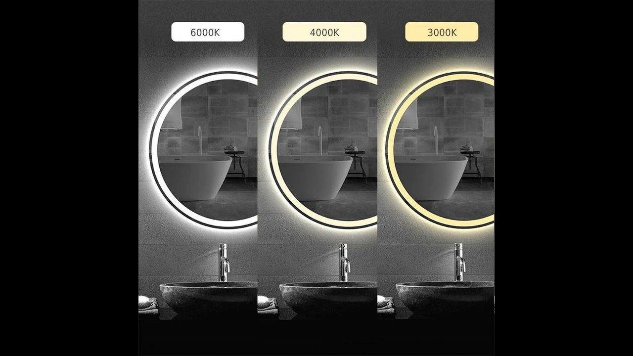 Lustro jest wykonane z najwyższej jakości materiałów, idealnie się prezentuje oraz jest bardzo wytrzymałe. Posiada do wyboru trzy zmieniane dotykowo barwy światła Led – ciepła, neutralną i zimną oraz funkcję podgrzewania zapobiegającą zaparowaniu powierzchni. Przełącznik dotykowy umieszczony w tafli lustra podświetlany jest na niebiesko przy aktywności funkcji. Przewód zasilający w kolorze białym o długości 110cm.
